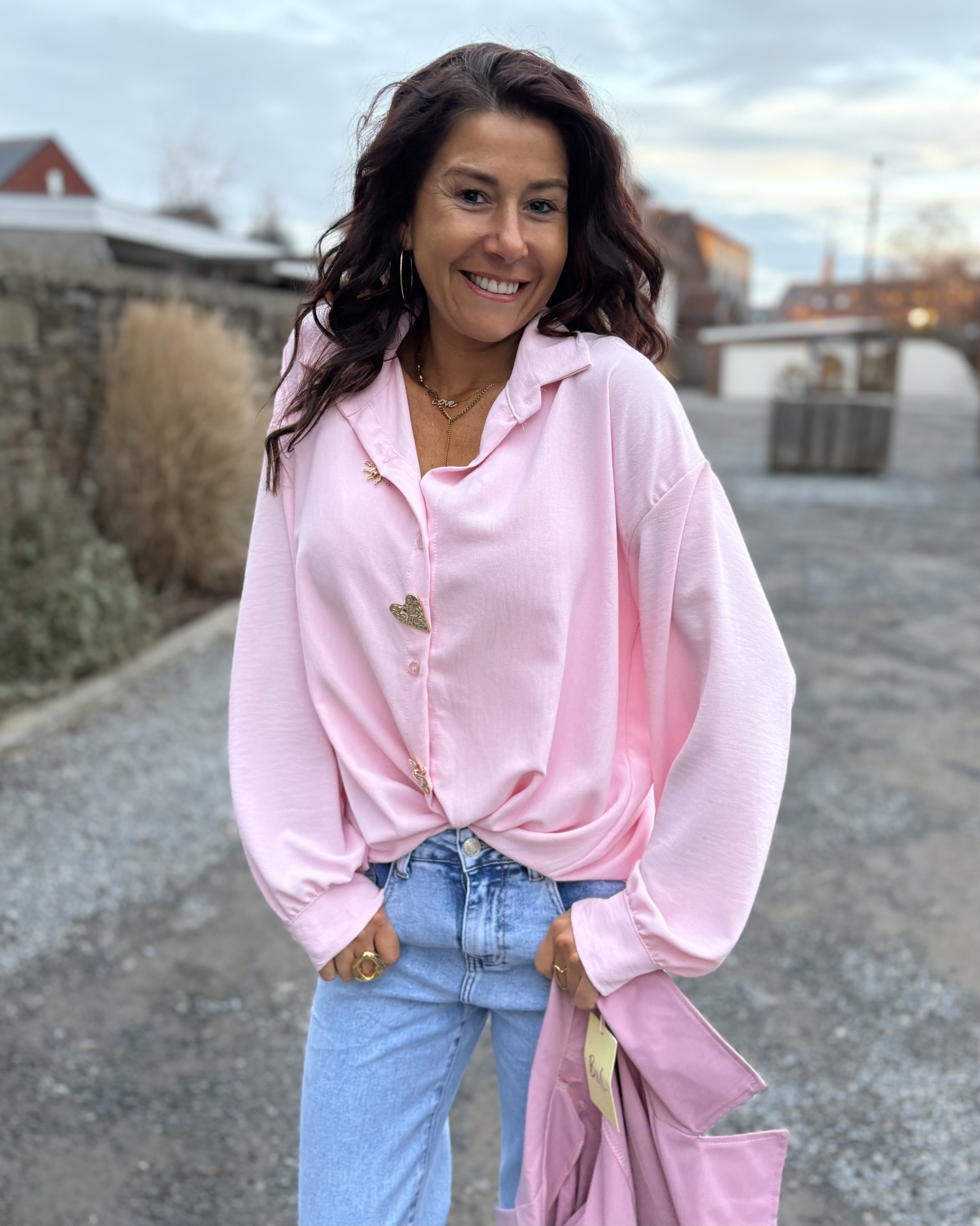 Ce chemisier séduit par sa couleur rose poudré délicate, féminine et lumineuse, parfaite pour illuminer le teint et apporter une touche de douceur à toutes les tenues. Sa coupe fluide et légèrement ample assure un tombé élégant et confortable, tout en mettant la silhouette en valeur sans marquer.
