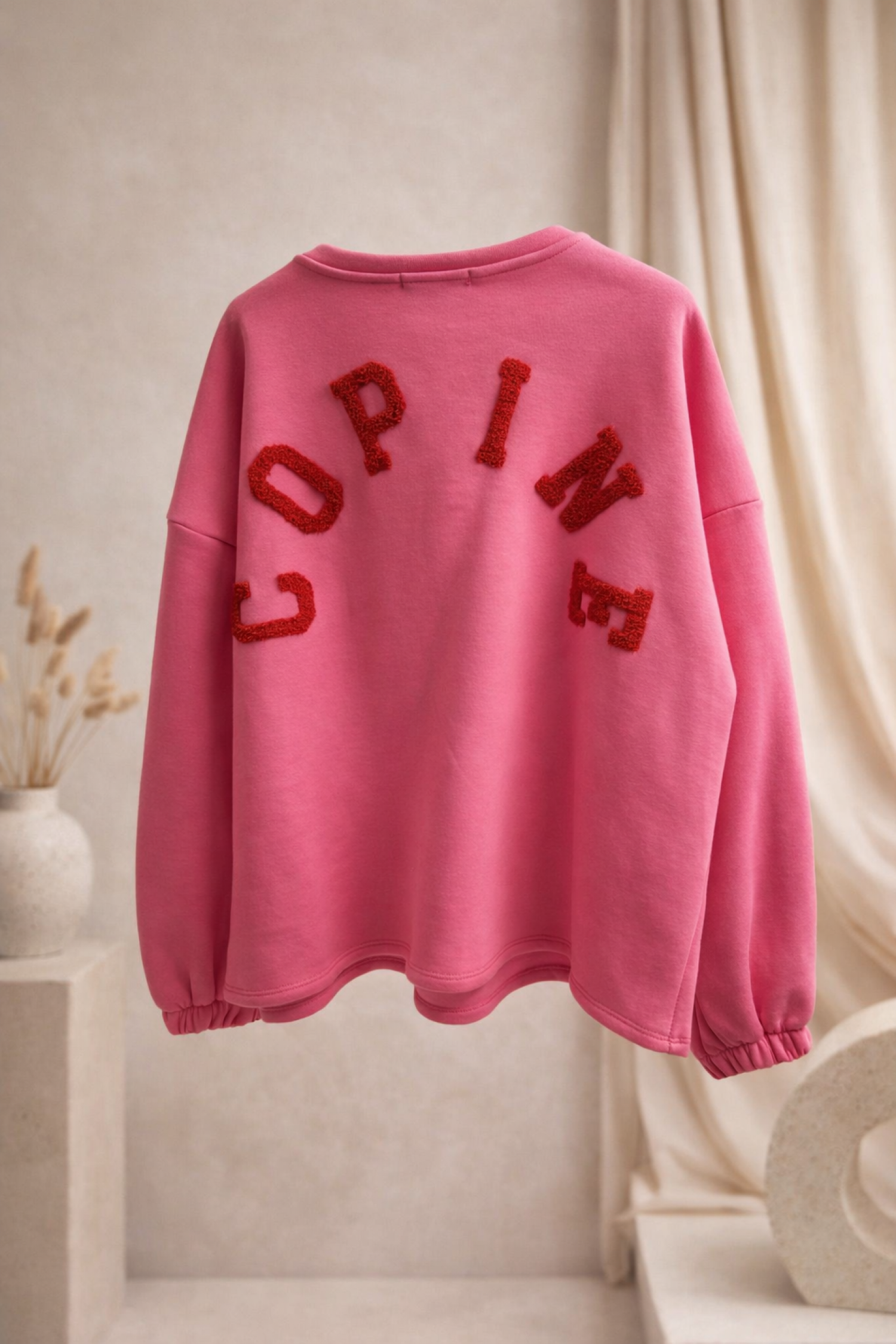 Dans le dos, l’inscription « COPINE » est brodée en lettres texturées effet bouclette, apportant du relief et une touche mode très actuelle.