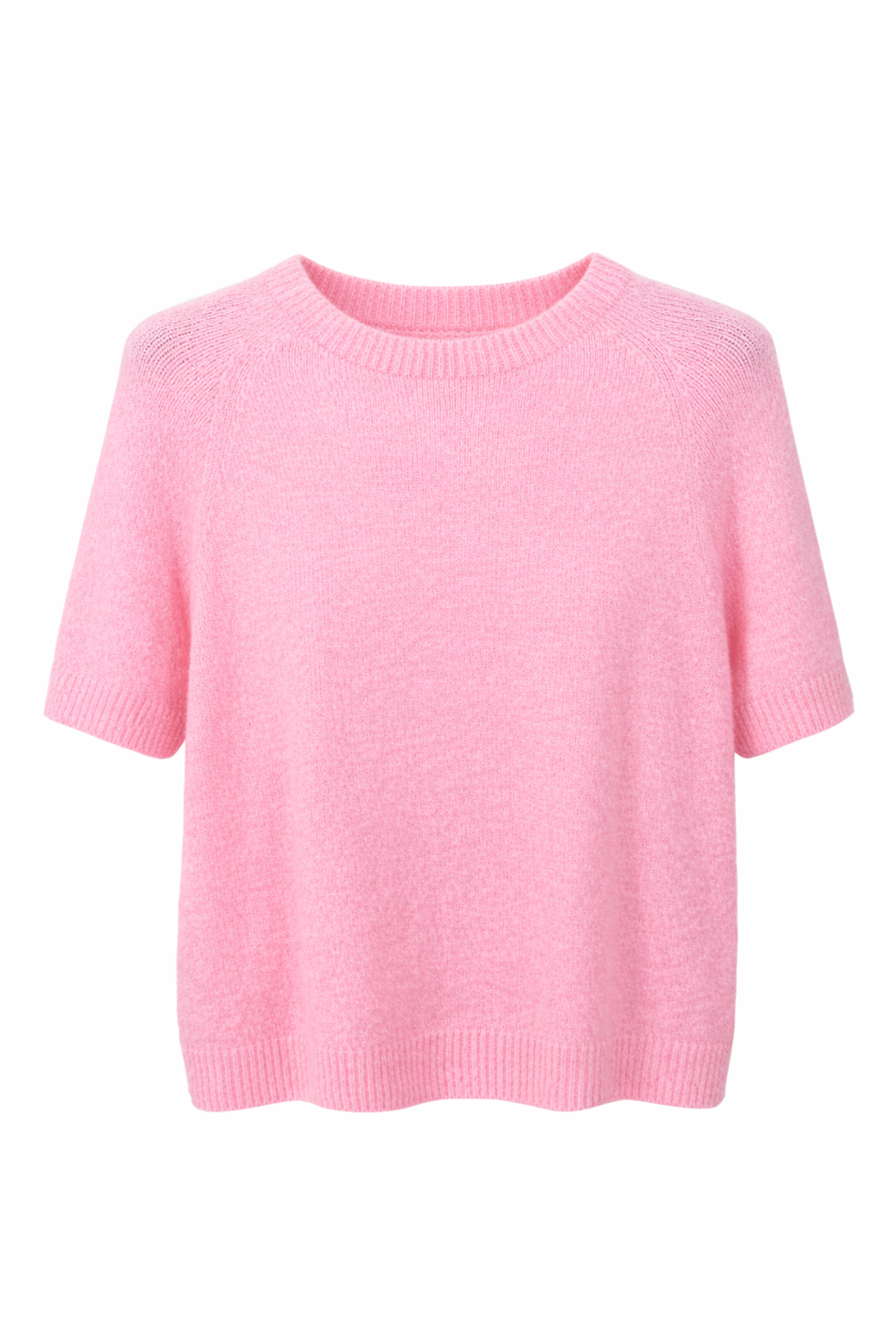 Pull manches courtes ultra doux en maille fine, parfait pour un look chic et minimaliste. On aime son col rond légèrement rehaussé et ses finitions côtelées aux manches et au bas, pour une tenue impeccable.