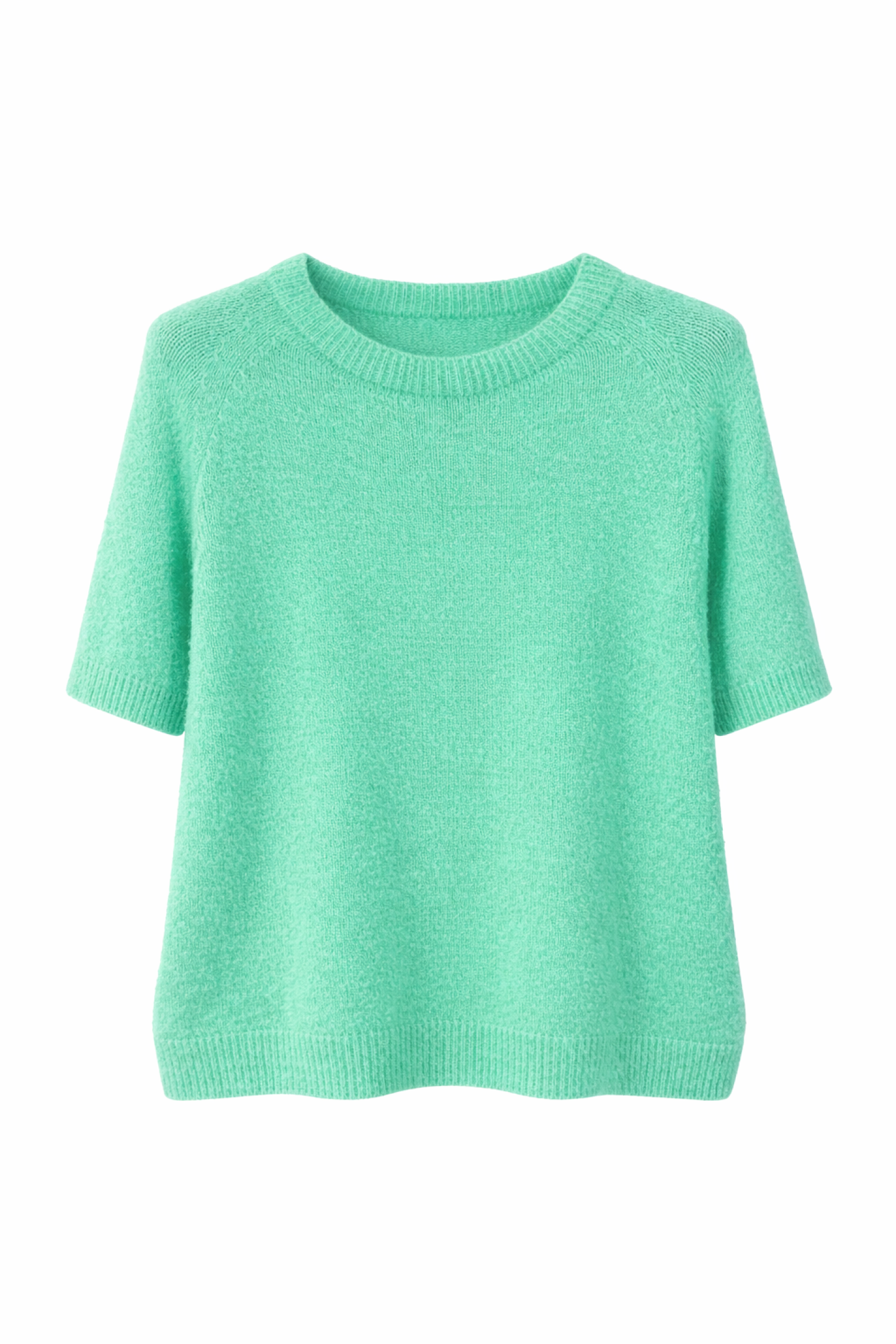 Pull manches courtes ultra doux en maille fine, parfait pour un look chic et minimaliste. On aime son col rond légèrement rehaussé et ses finitions côtelées aux manches et au bas, pour une tenue impeccable.