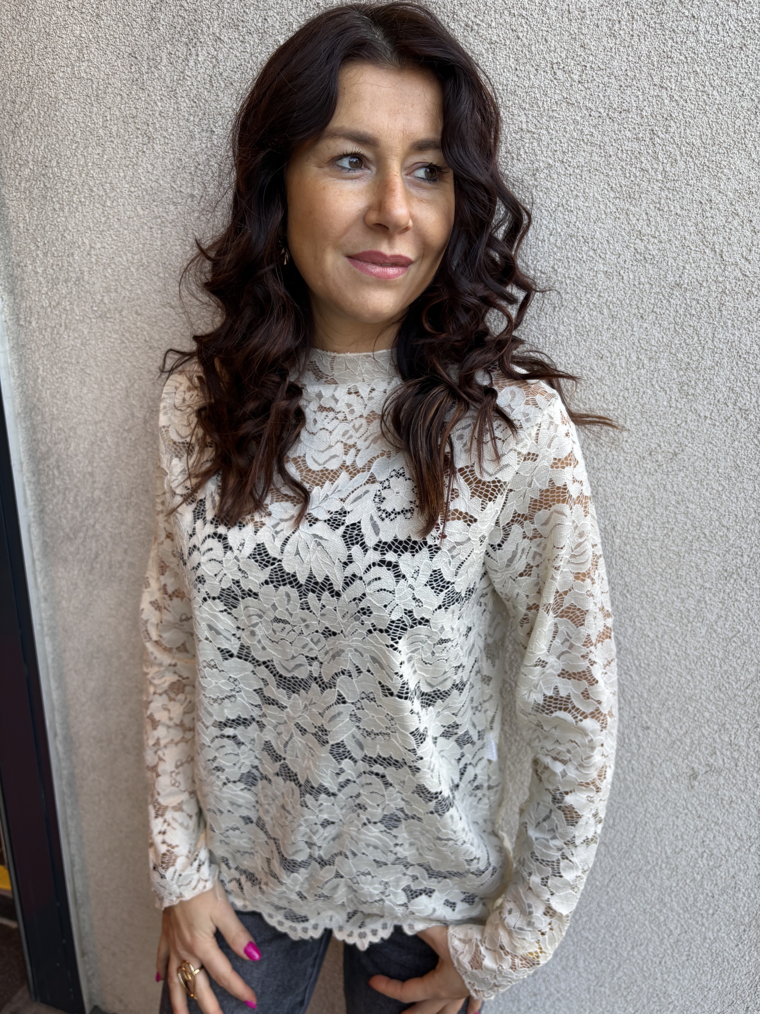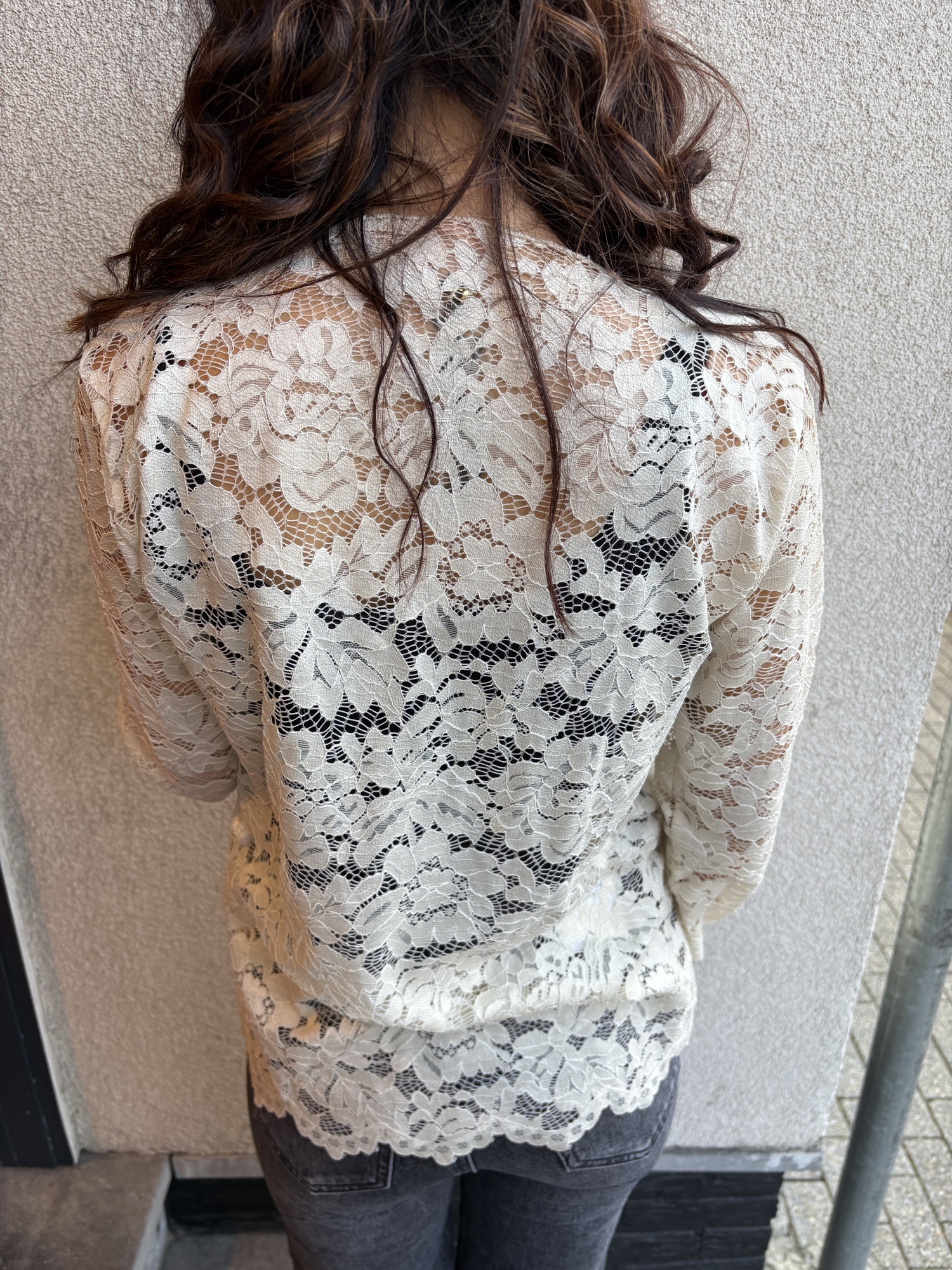 Top en dentelle délicate au style romantique et élégant. Sa matière entièrement ajourée apporte une touche de féminité tout en restant raffinée.