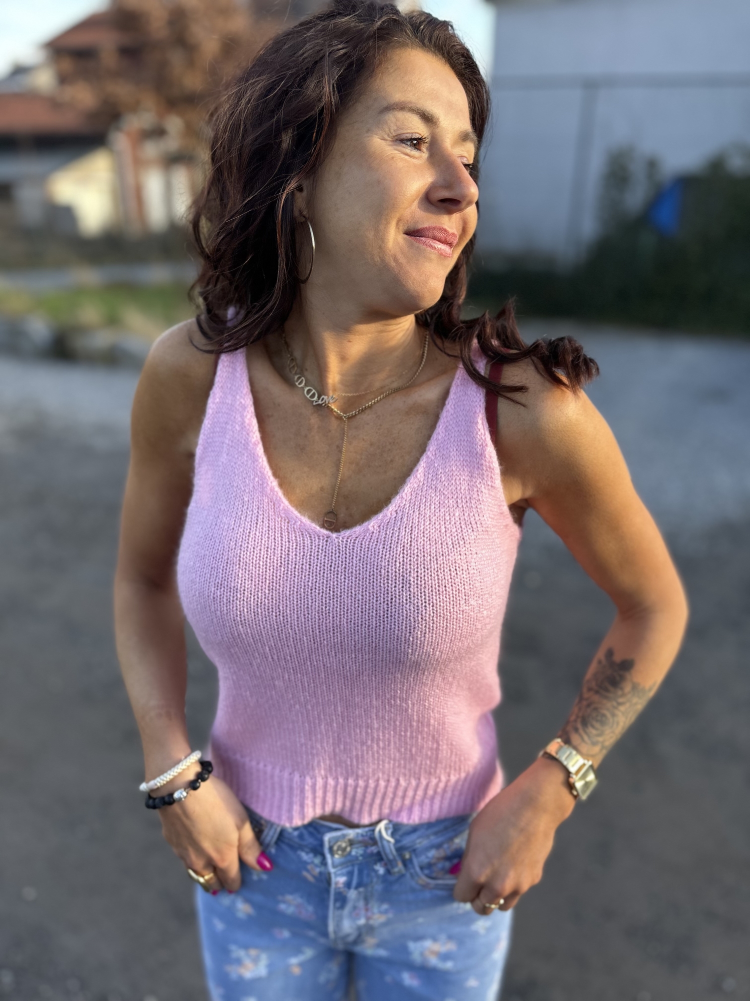 Top en maille douce et légère, idéal pour apporter une touche féminine et lumineuse à vos tenues.